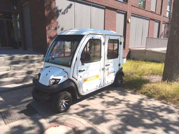 Een omgebouwd Golfkarretje bij een Wijkcentrum in Uden.