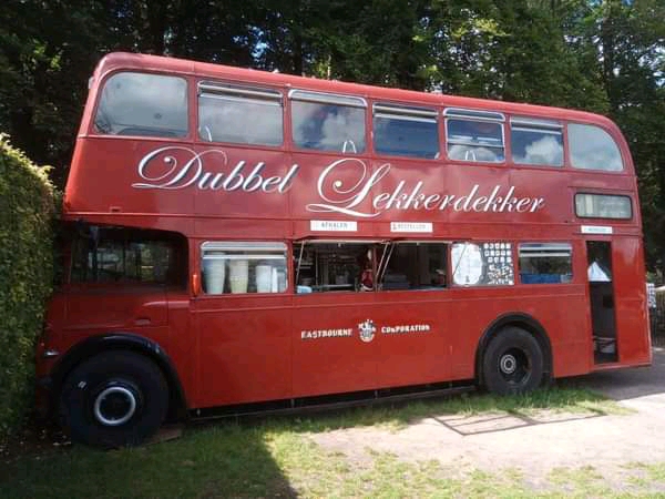 Een Leyland Titan verbouwd tot snackbar op een camping in Woudenberg
